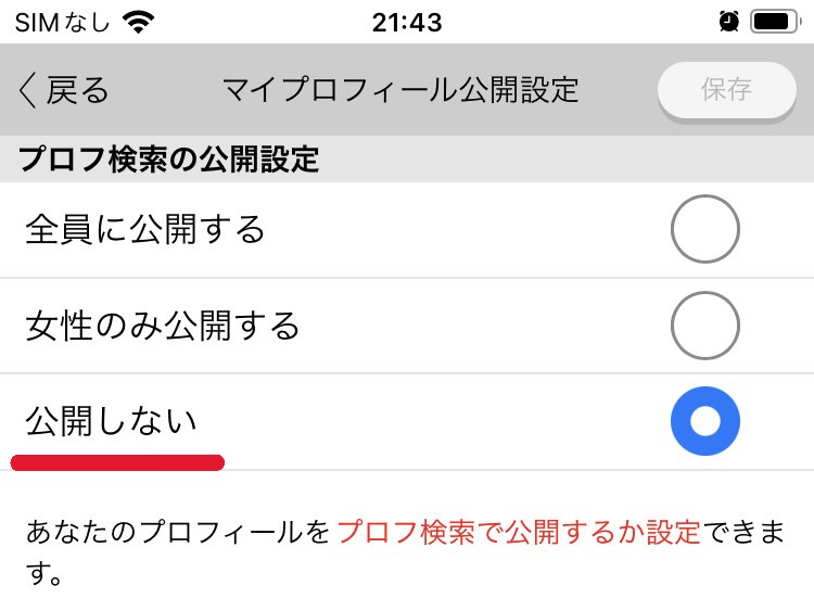 私は自分のプロフィールを検索できない【公開しない】に設定しています。